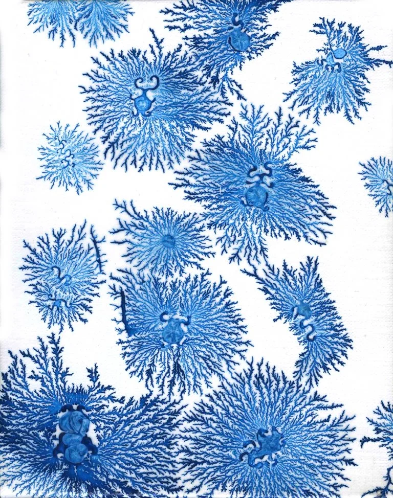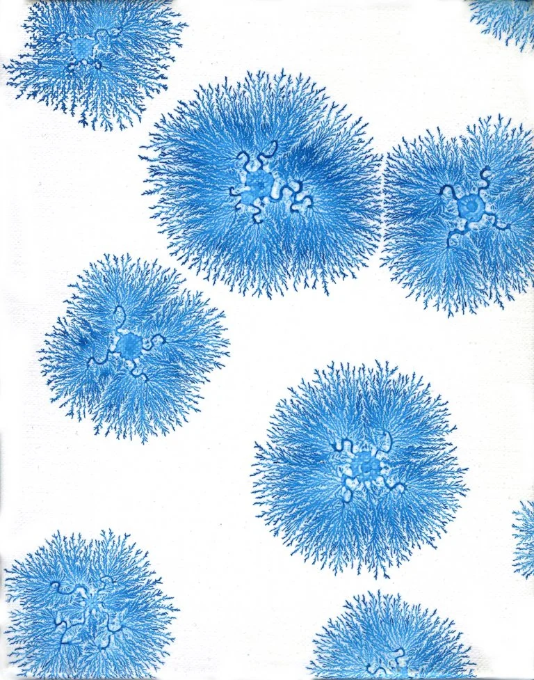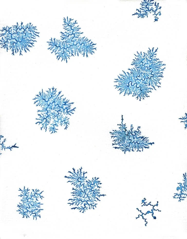 La série Ming est constituée de 58 tableaux. Au tout début de mes recherches, en 2006, j’ai entrepris un inventaire sur le motif fractal dans le but d’explorer toute sa diversité. Très vite, je me suis rendu compte qu’il existait une infinité de formes à l’instar des flocons de neige vus au microscope.