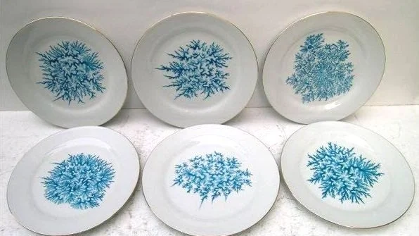 Déclinaison du motif fractal sur des assiettes en porcelaine pour la société Asiatides.